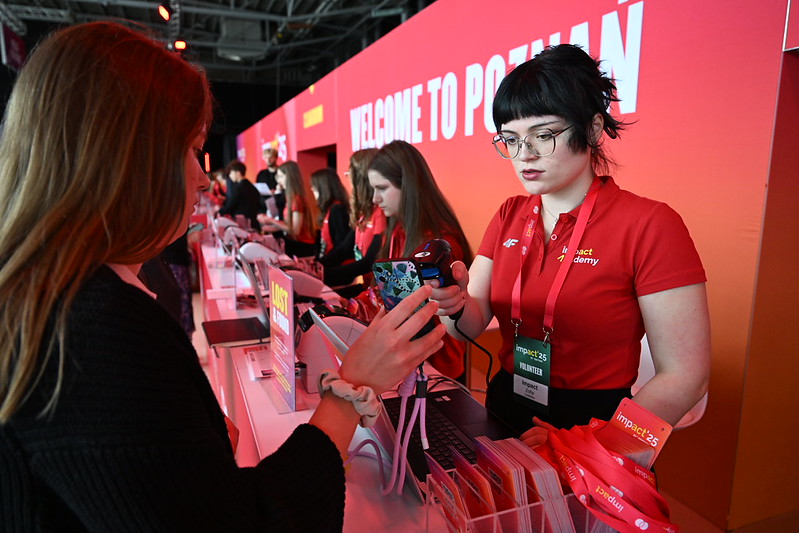 Instead of preparing thousands of ready-made badges before the event, which often generates chaos and errors, the focus was on full technology integration with Brother label printers. Immediately after scanning a participant's QR code, the system automatically sent a signal to the printer, which printed a personalized sticker with their name and surname in a few seconds. The staff efficiently applied it to a ready-made badge and handed it to the guest. This solution saved time (the entire process from scanning to handing over the badge took only a moment), eliminated errors (the lack of manual signing meant an aesthetic and professional look without mistakes in names), and built the image (modern on-site printing technology emphasized the innovative character of the IMPACT conference).